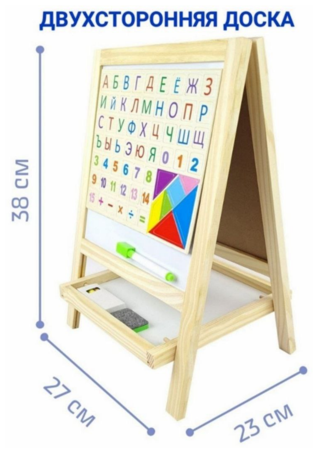 Доска знаний-мольберт двусторонний , регулируемый по высоте, с вместимым пеналом, для детей от 3 лет