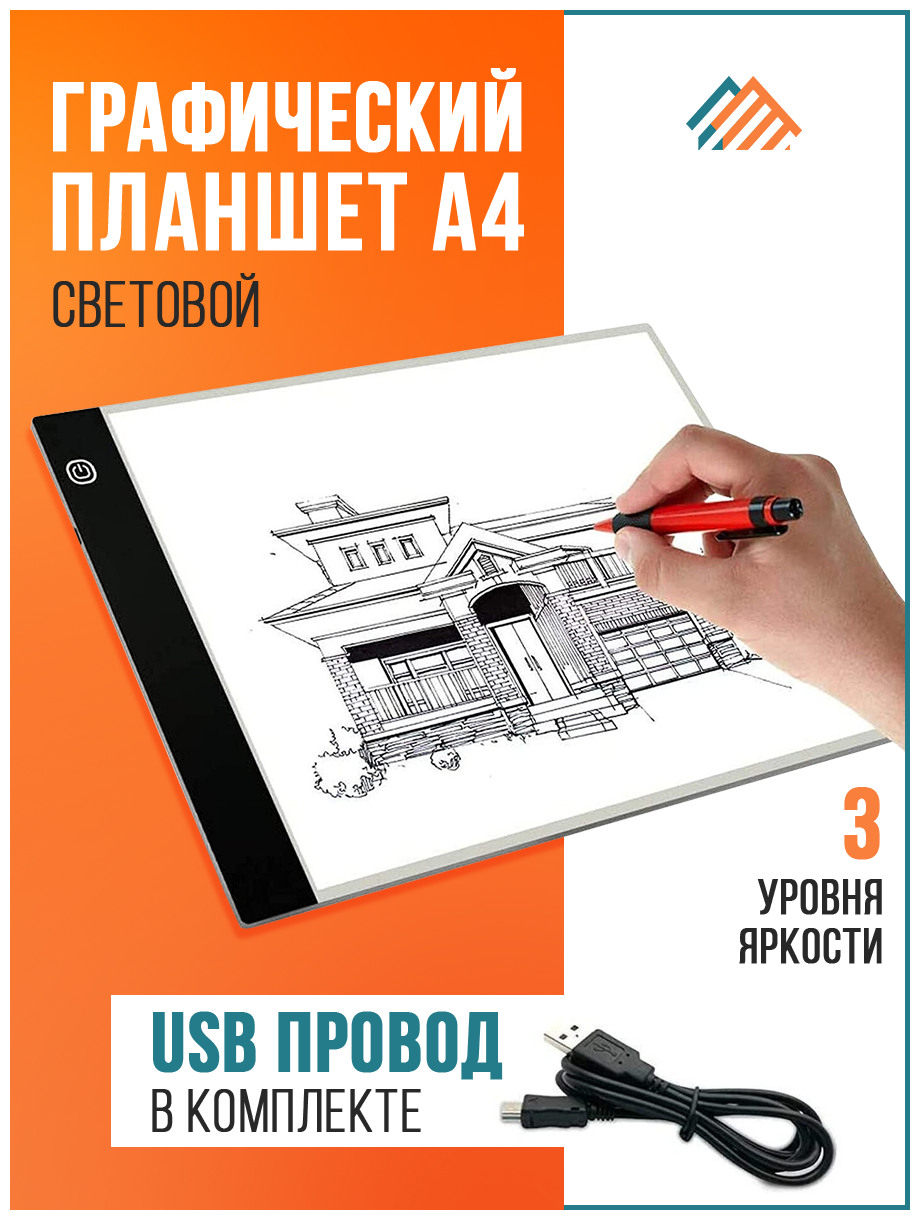 Световой планшет для копирования и рисования с LED подсветкой А4 информация: