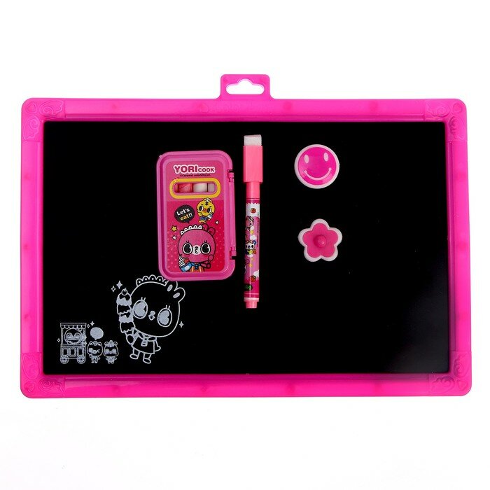 Доска магнитная двухсторонняя, под маркер и мел, мел 3 шт. в машинке, маркер, магниты 2 шт., цвет микс информация:
