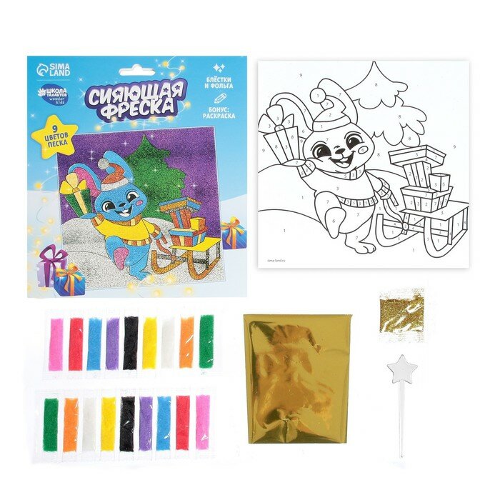 10 цен на Сияющая фреска на новый год «Зайка и сани», новогодний набор для творчества
