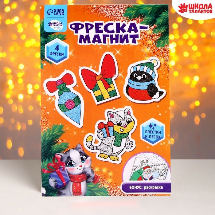10 цен на Магнит - фреска своими руками на новый год «Снегирь и котик», новогодний набор для творчества(2 шт.)