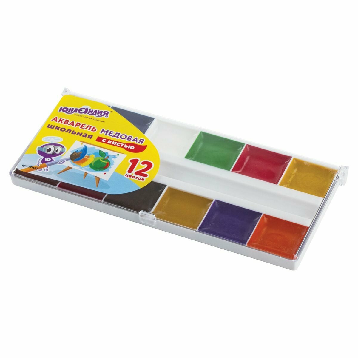 Краски акварельные медовые 12 цветов Юнландия "Школьные", с кистью, пластиковая коробка, 16 уп. информация: