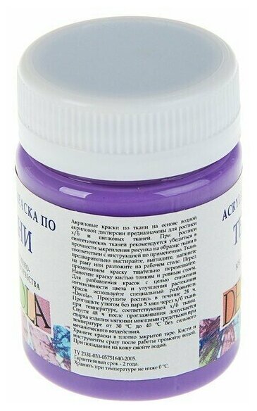 Краска акриловая по ткани Невская палитра DECOLA, 50 мл, фиолетовая светлая информация: