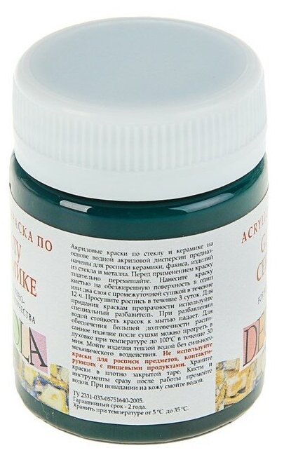 Краска акриловая по стеклу и керамике Невская палитра DECOLA, 50 мл, изумрудная информация: