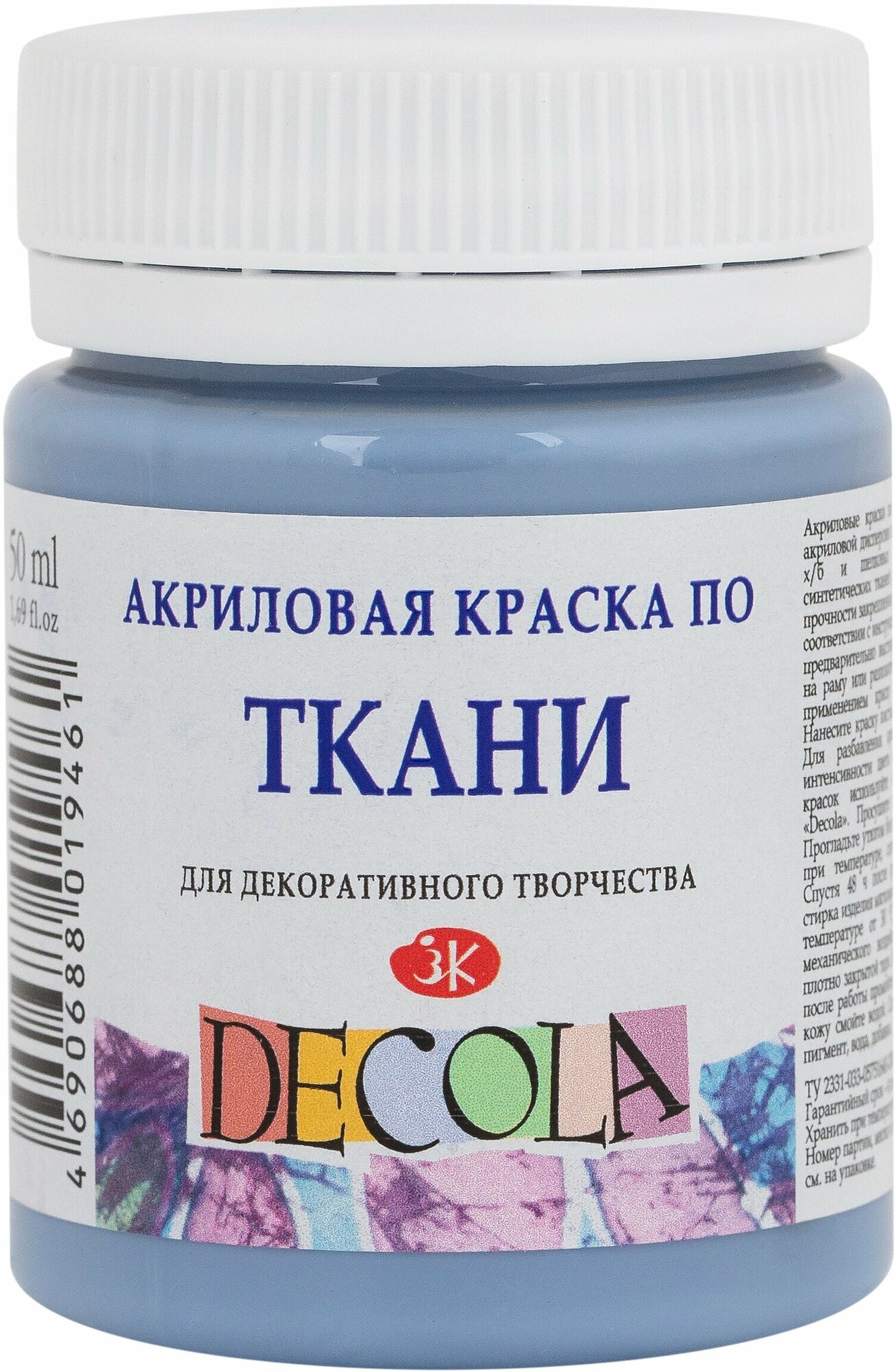 Краска акриловая по ткани Невская палитра DECOLA, 50 мл, пыльная синяя информация: