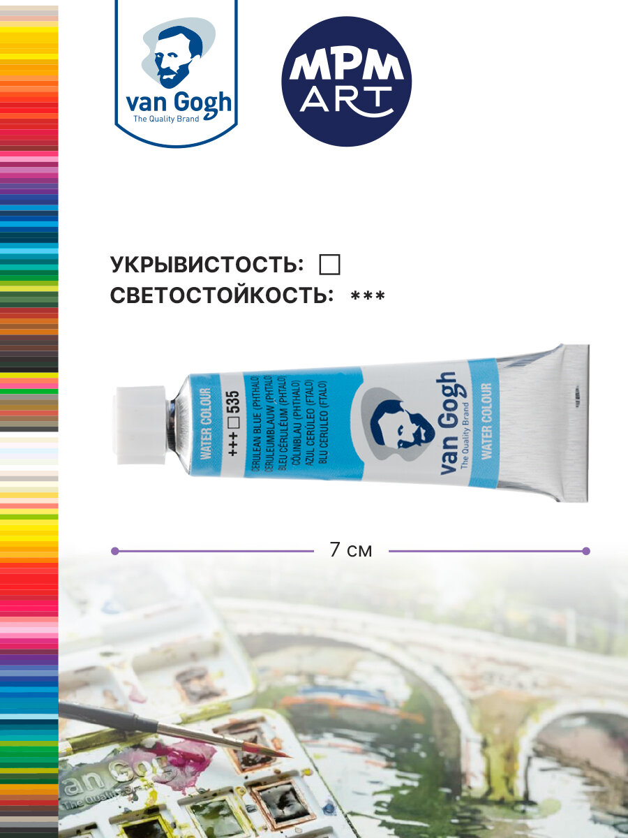 Отзывы на Краска акварельная Van Gogh №535 Лазурно-синий фталоцианин, туба 10мл.