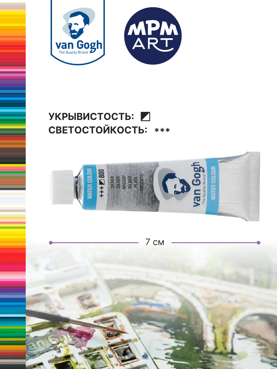 Краска акварельная Van Gogh №800 Серебряный, туба 10мл. информация: