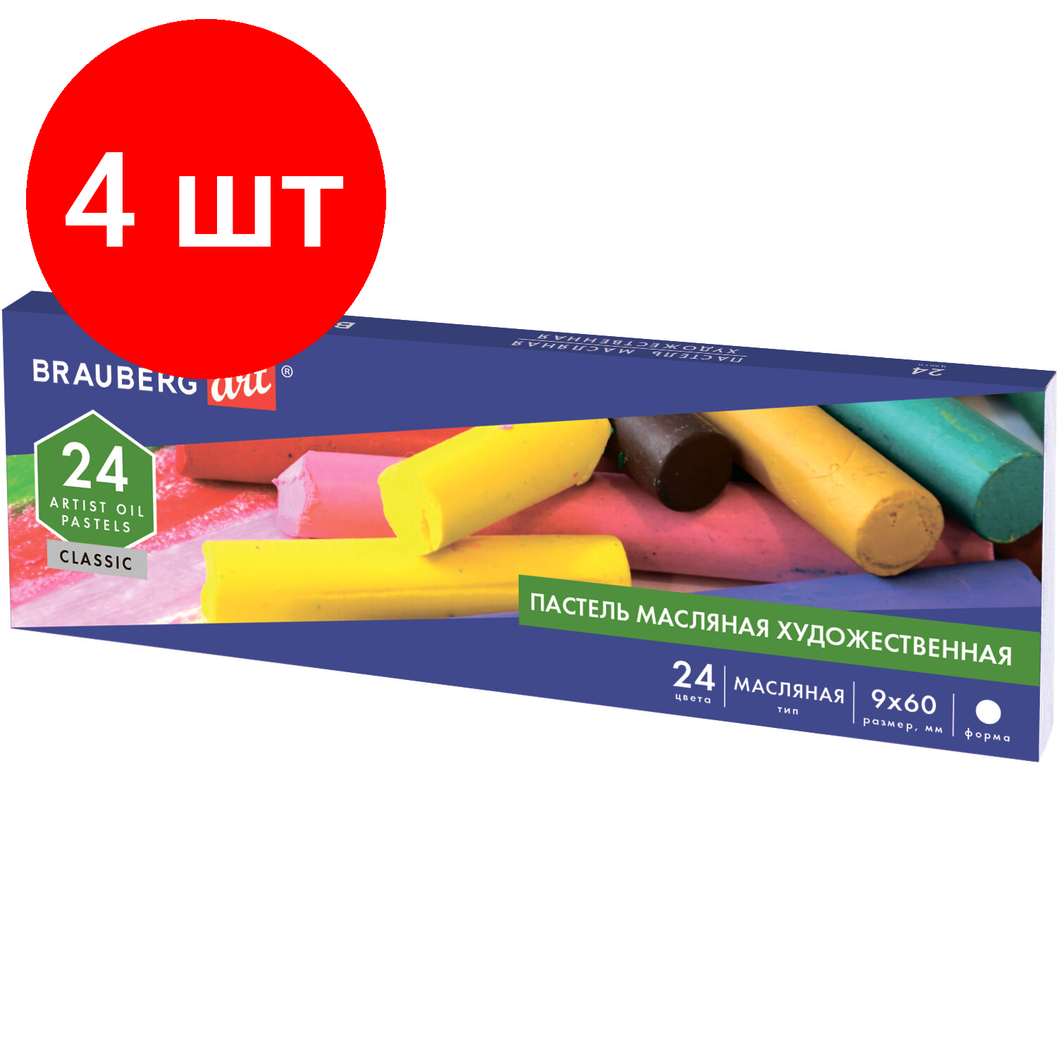 Комплект 4 шт, Пастель масляная художественная BRAUBERG ART CLASSIC, 24 цвета, круглое сечение, 181448 информация: