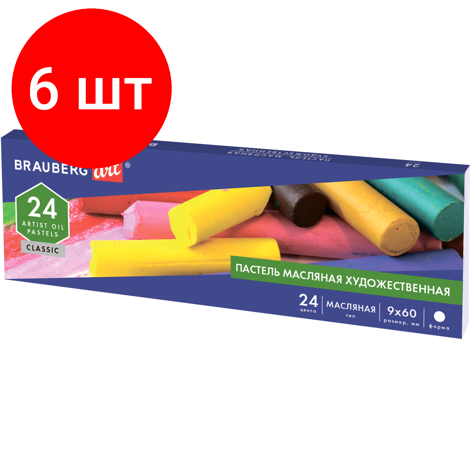 Комплект 6 шт, Пастель масляная художественная BRAUBERG ART CLASSIC, 24 цвета, круглое сечение, 181448 информация: