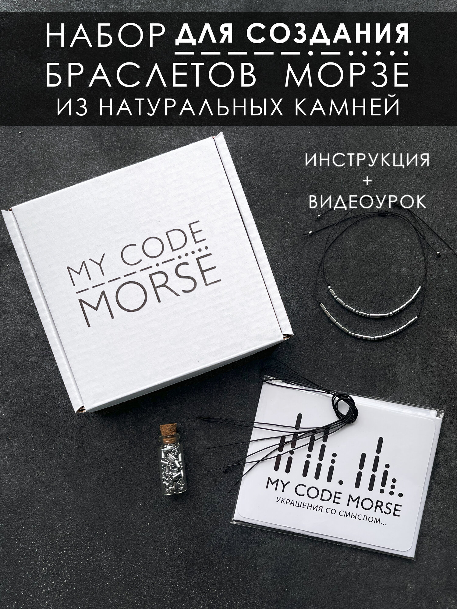 | Комплектация | Азбука Морзе, Инструкция; 2 нити для браслета, 2 нити для застежки; колба с камнями гематита, коробка, ссылка на видеоурок |
