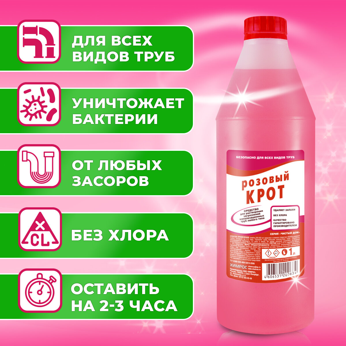 10 цен на Средство для прочистки труб от засоров Розовый Крот 1л.