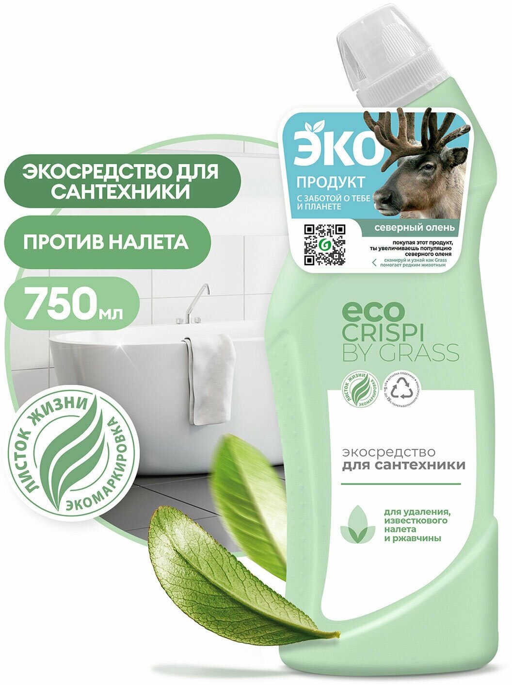 Чистящее средство Grass CRISPI экологичное для сантехники, 750 мл