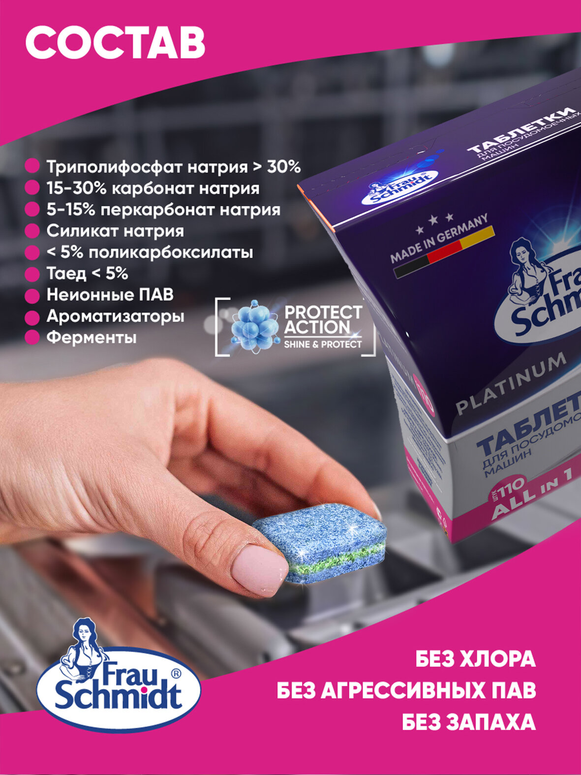 Таблетки для посудомоечной машины Frau Schmidt Platinum. Средство для мытья посуды 110 таблеток 1 595 ₽