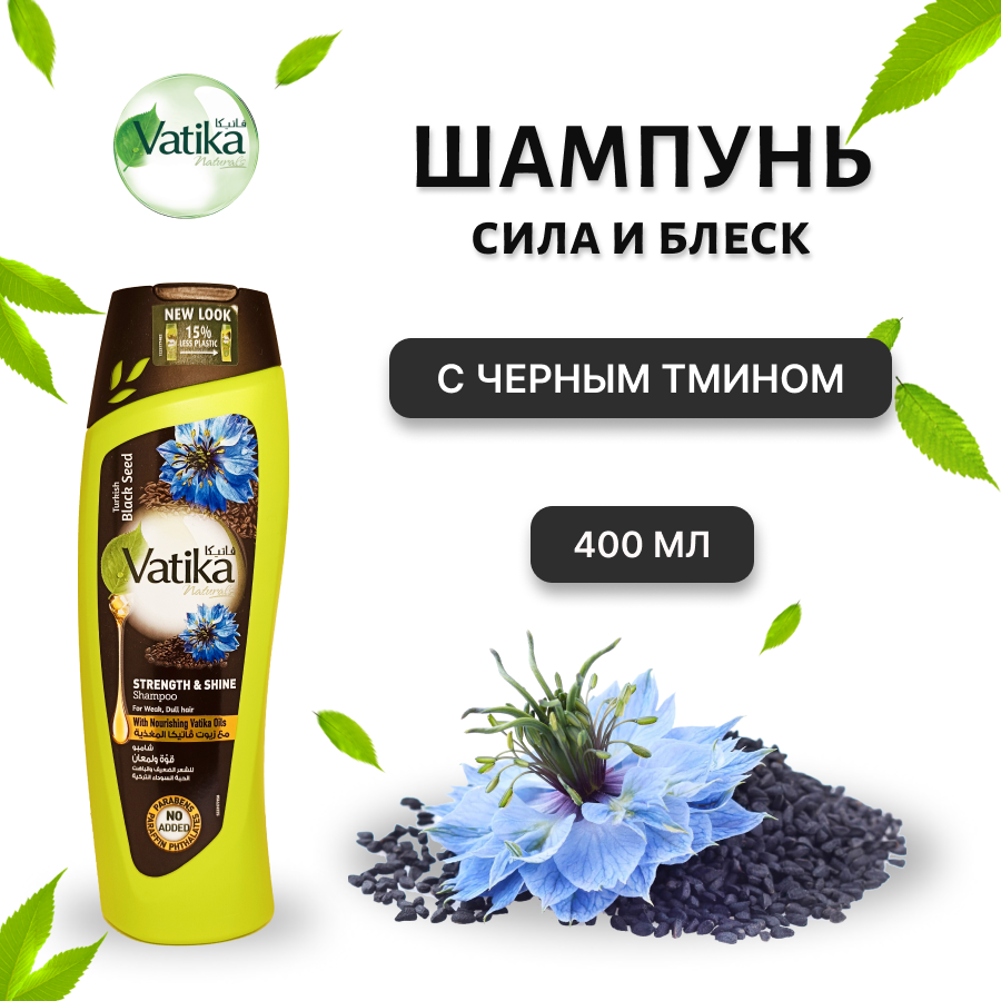 Шампунь Vatika Strength & Shine с черным тмином, для всех типов волос, 400 мл
