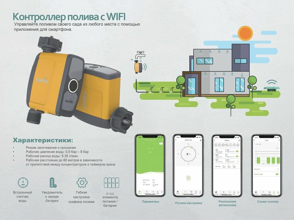 Система автополива Rainpoint с дистанционным управлением (Wi-fi хаб, умная розетка 220V, Клапан), для сада, огорода, дачи информация: