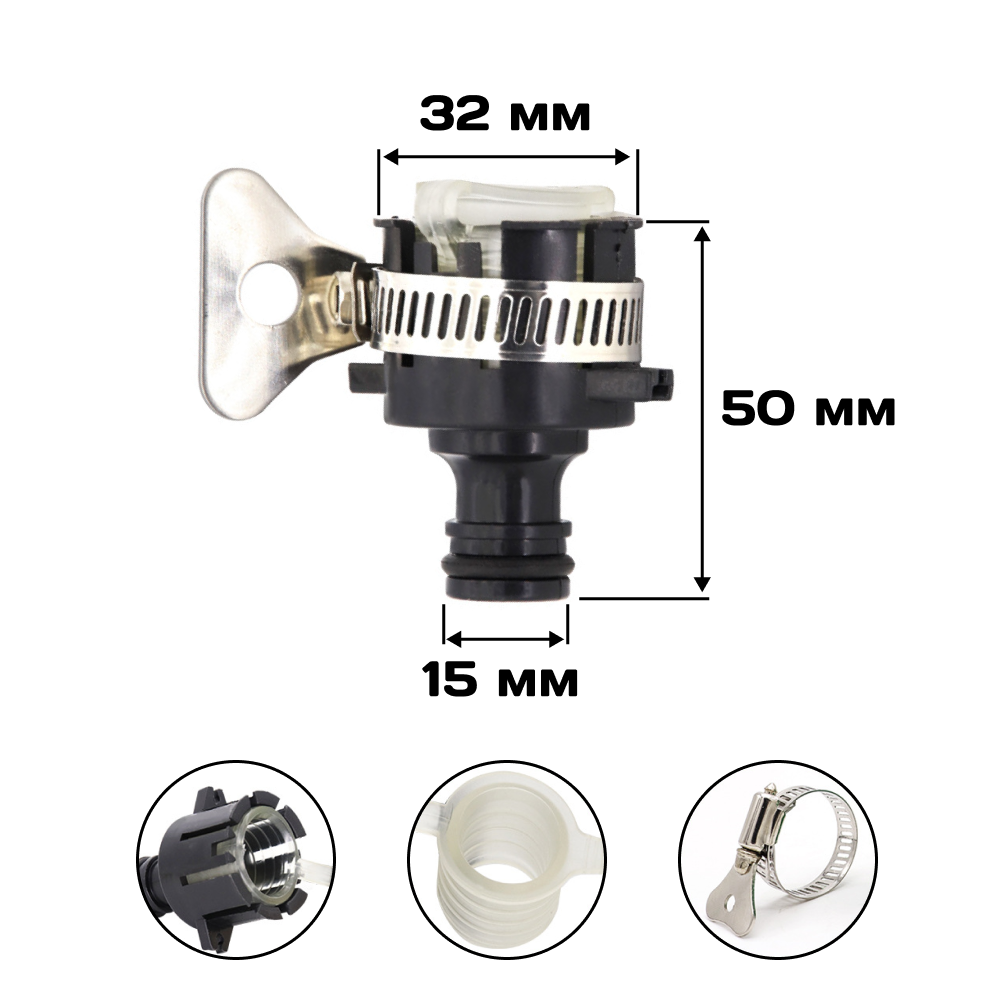 Штуцер - адаптер для кранов без резьбы, быстросъемное соединение , насадка на шланг для полива информация: