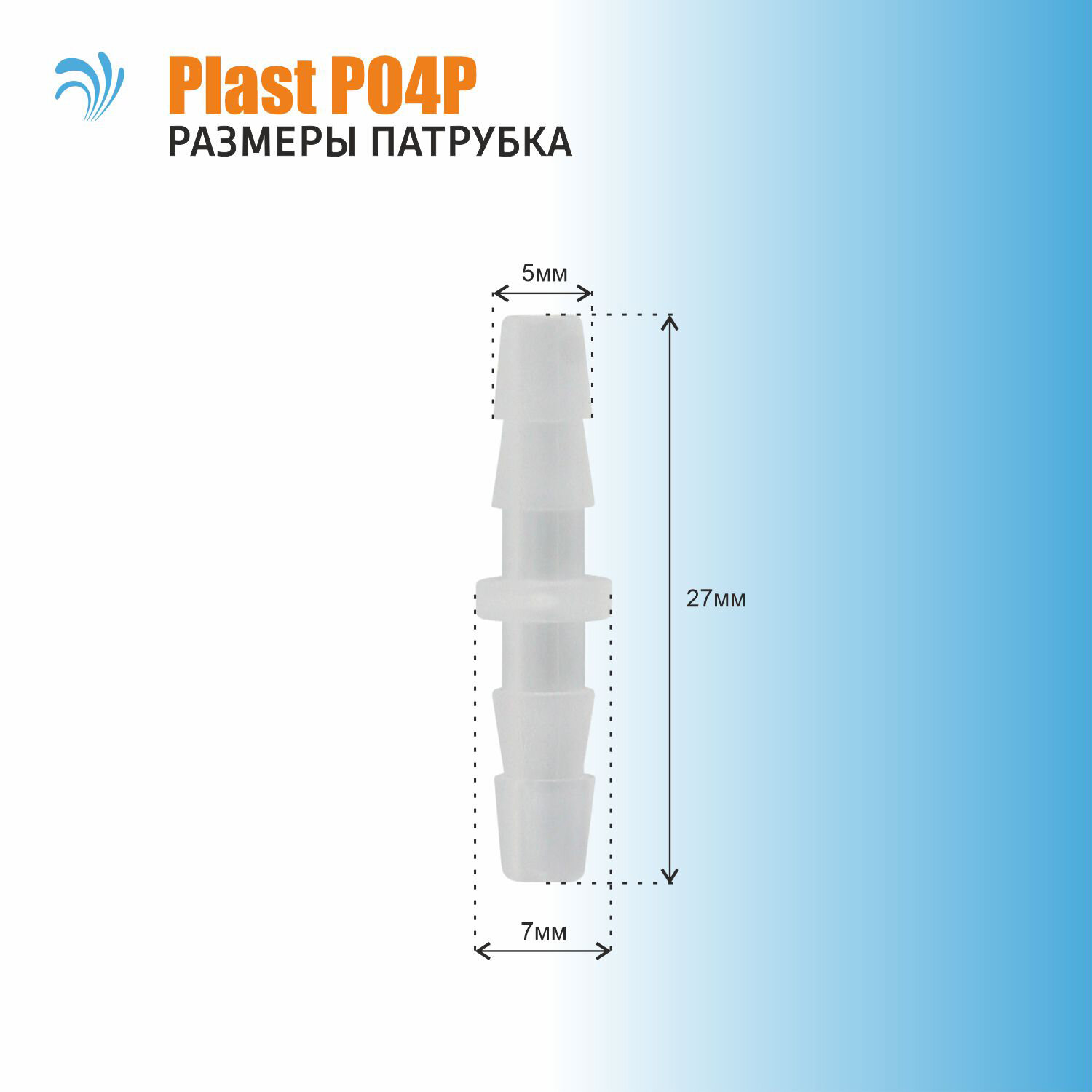 Krelong Plast P04P - прямой пластиковый патрубок соединения шлангов с внутренним диаметром 4мм, набор 2 штуки информация: