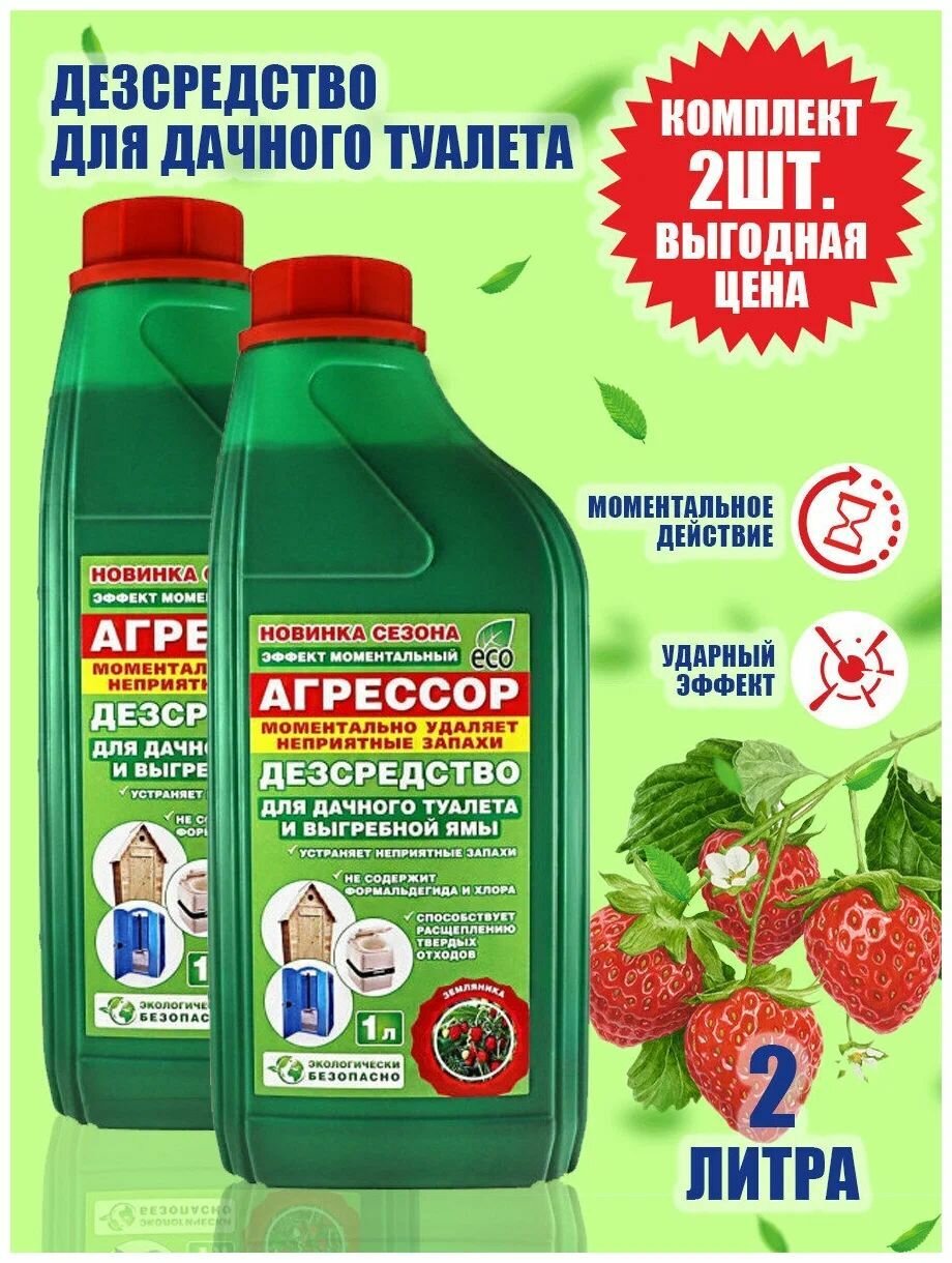 2 штуки Жидкость дезодорирующая Агрессор для дачного туалета и выгребной ямы, 1 л информация: