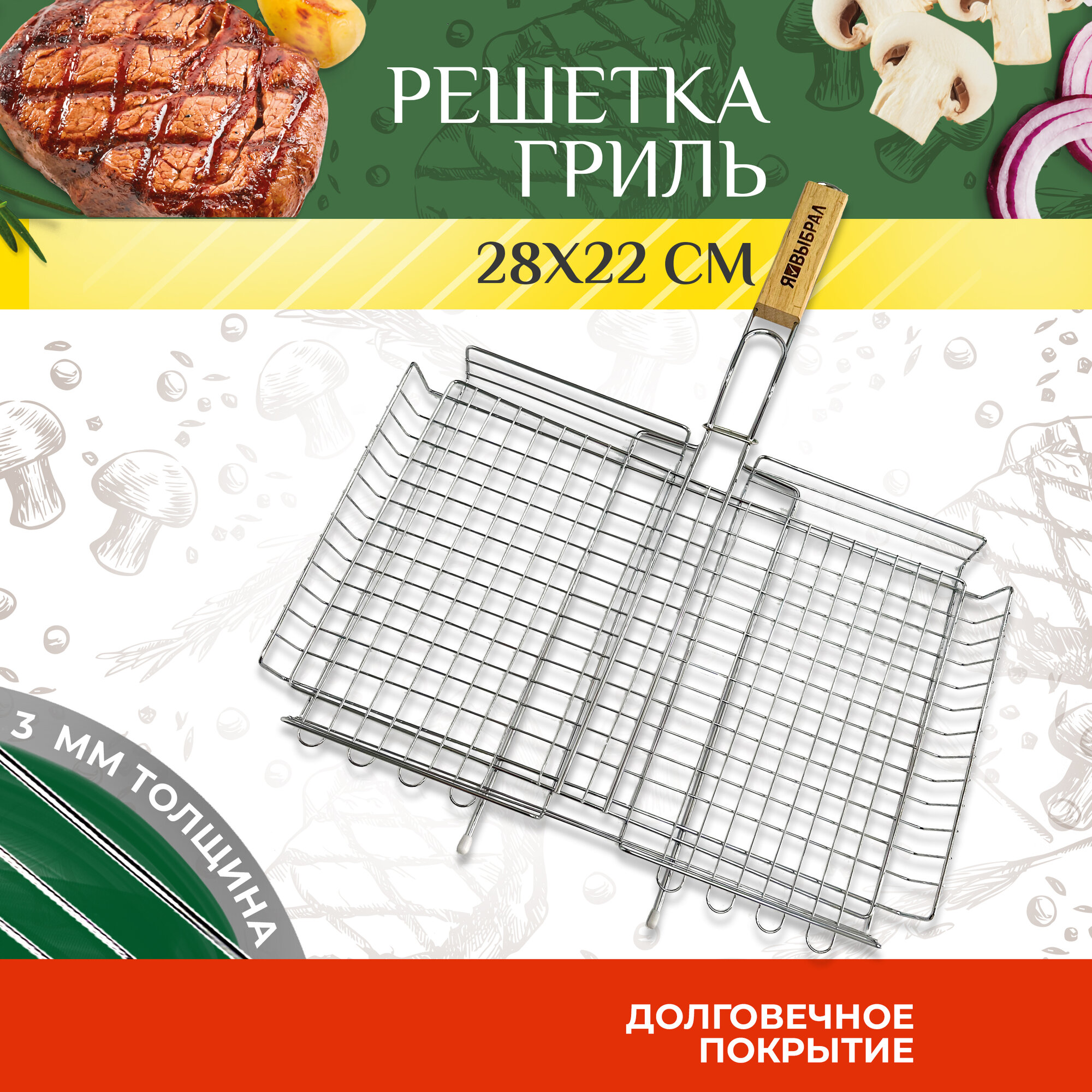 Решетка гриль LESNIKOVA, для птицы, металл, деревянная рукоять, 35x26 см