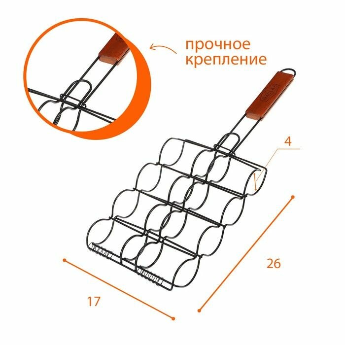 Отзывы на Решётка гриль для сосисок антипригарная, изделие из хромированной стали для жарки колбасок и саделек на мангале, 50x26x17 см