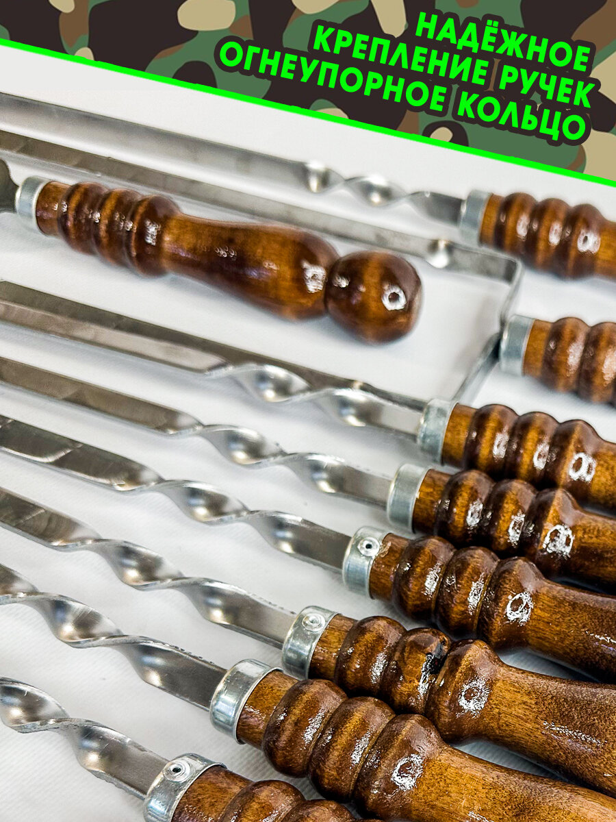 10 цен на Шампура с деревянной ручкой, набор для шашлыка подарочный 12 предметов