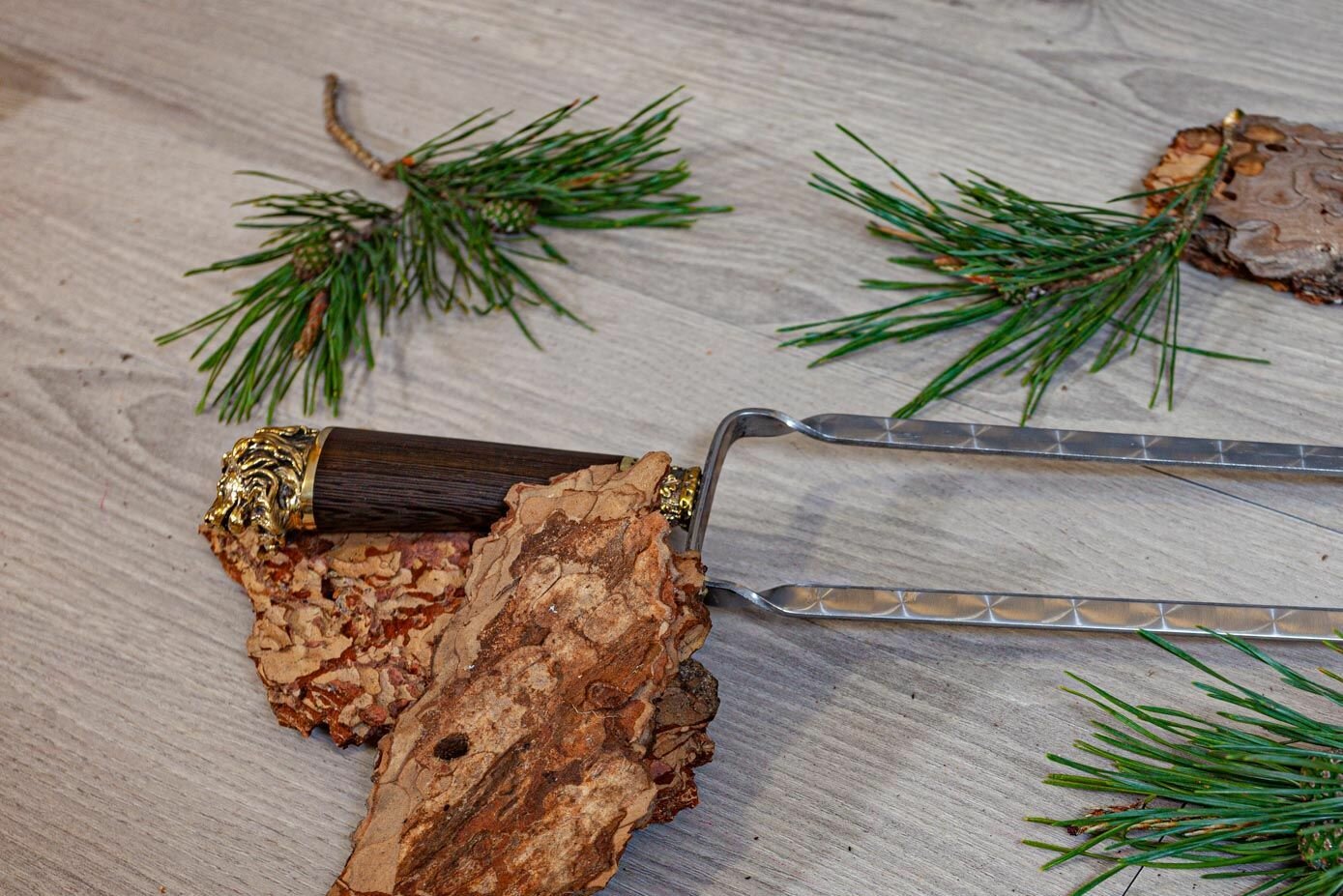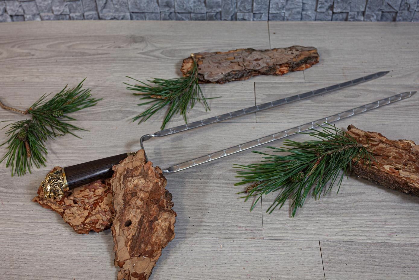 Двойной шампур и нож-вилка со стальной ручкой, Кованые Изделия