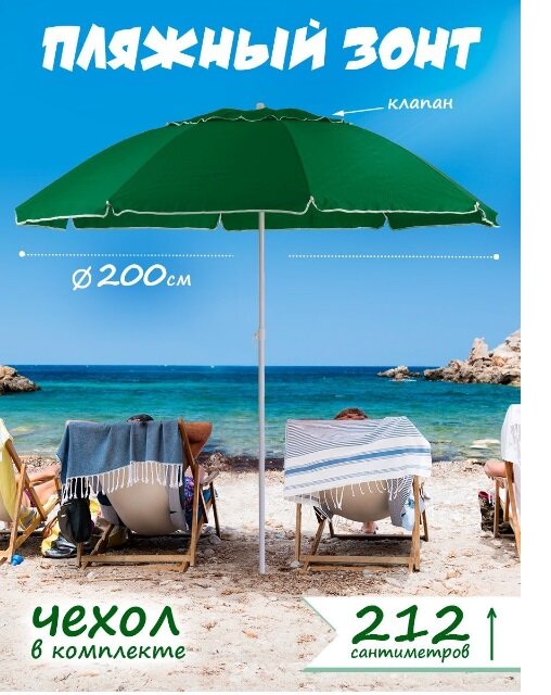 10 цен на Пляжный зонт, 2 м, с клапаном премиум Премиум Oxford (зеленый) в чехле 200/8 kN