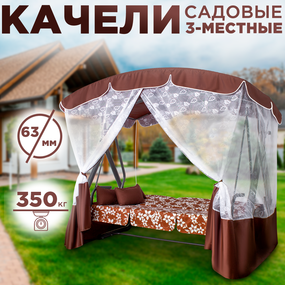 Отзывы на Садовые качели элегант премиум для дачи уличные 3-местные подвесные с тентом и москитной сеткой коричневый