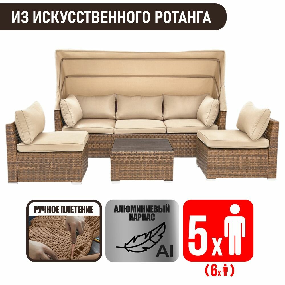 Отзывы на Садовый комплект-трансформер Тет-а-тет из ротанга с тентом, капучино. Стальной каркас