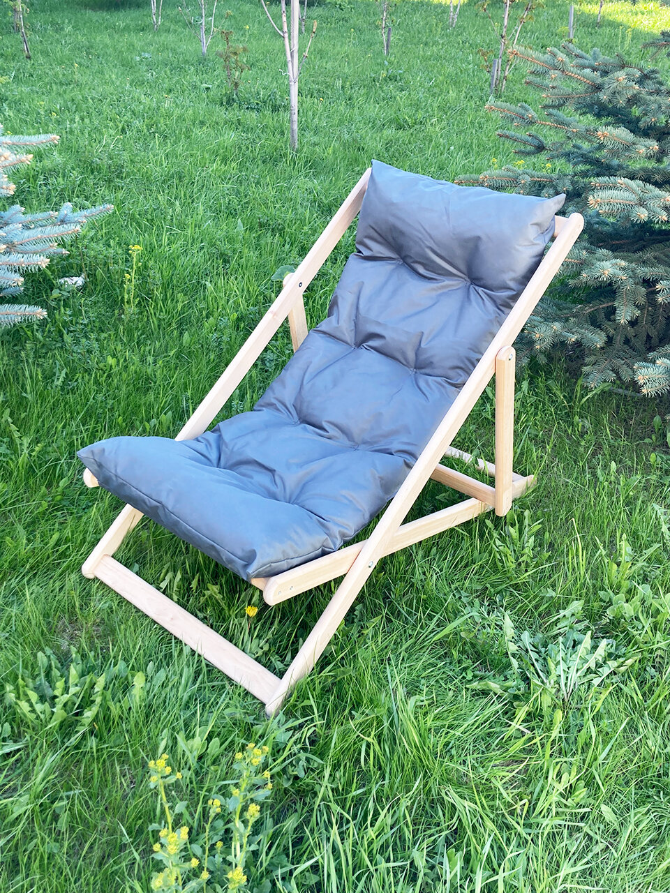 Кресло-шезлонг складной деревянный серый 2 600 ₽