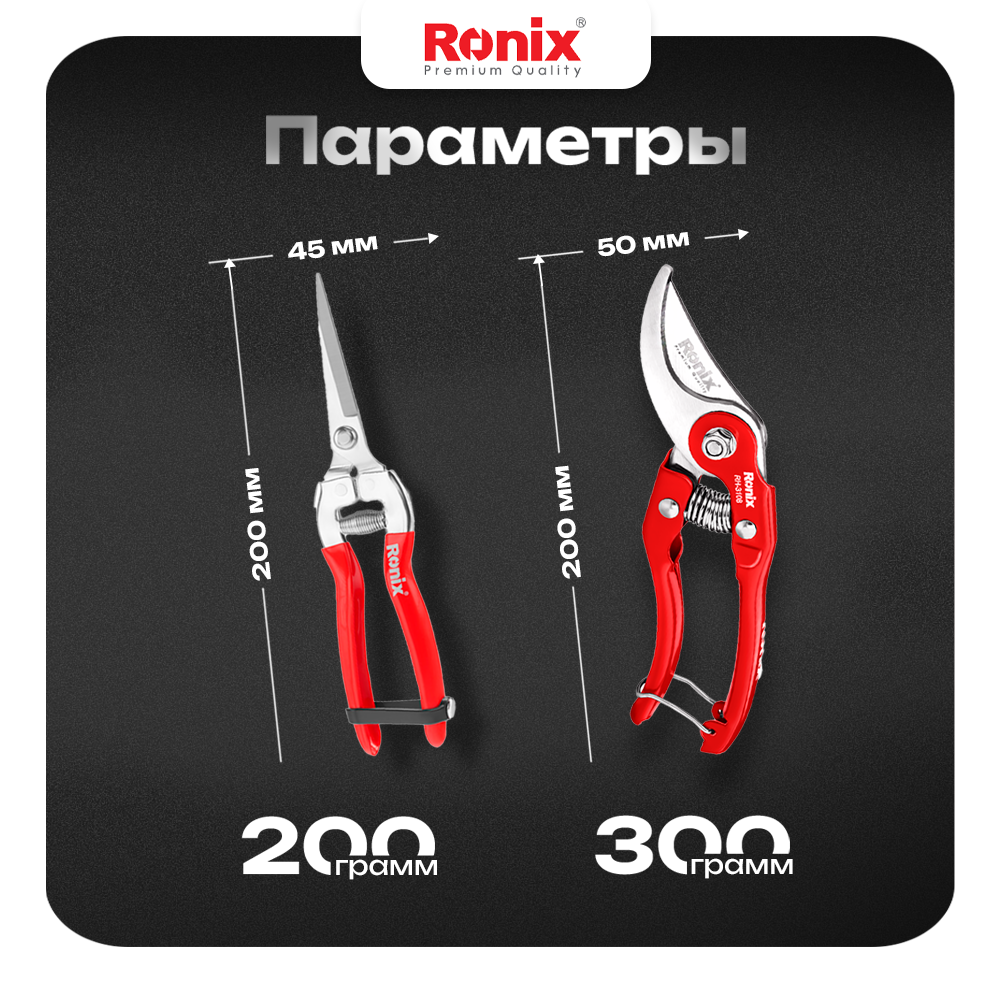 Секатор садовый для роз и кустарников Ronix длина 200 мм , материал японская сталь, с функцией плокировки лезвий 650 ₽