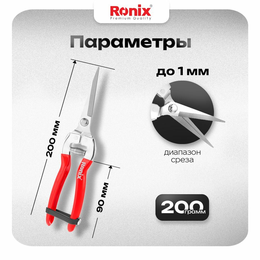 Секатор для цветов, ножницы садовые универсальные Ronix 200 мм диапазон реза до 1 мм, японская сталь информация: