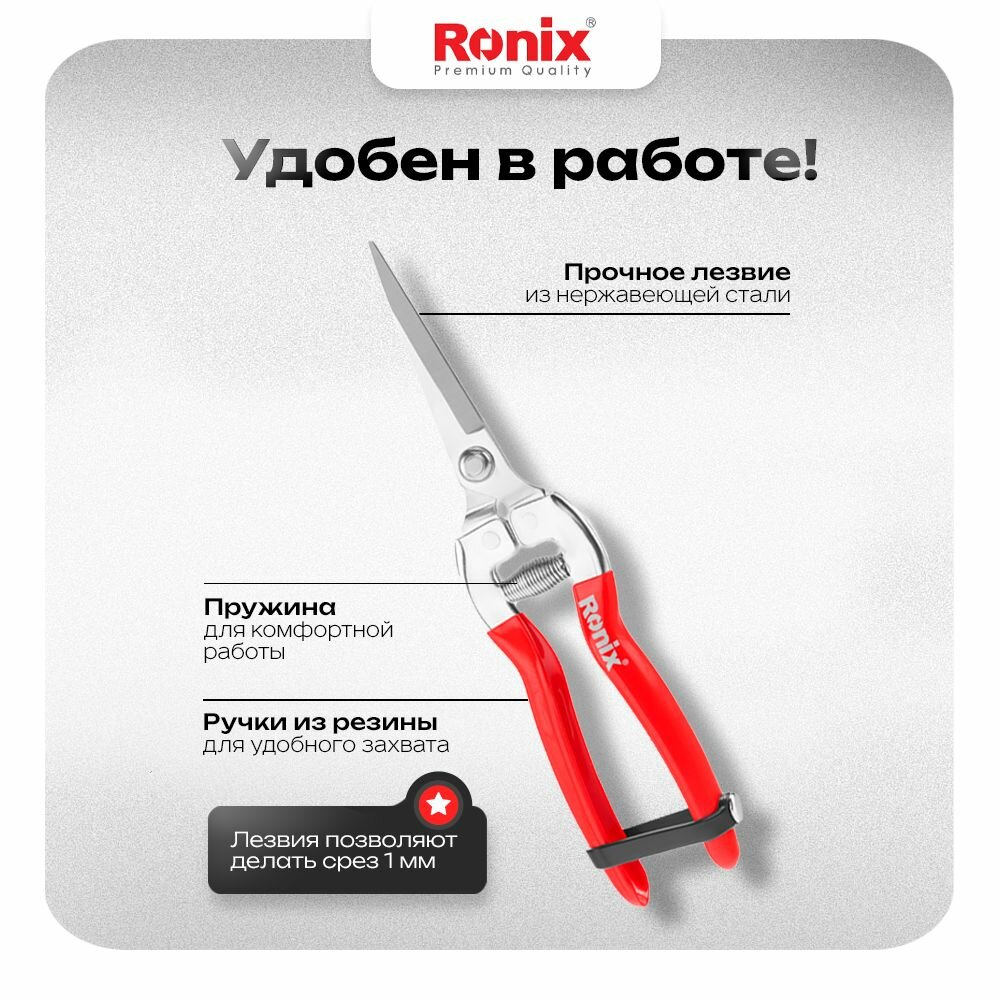 Отзывы на Секатор для цветов, ножницы садовые универсальные Ronix 200 мм диапазон реза до 1 мм, японская сталь