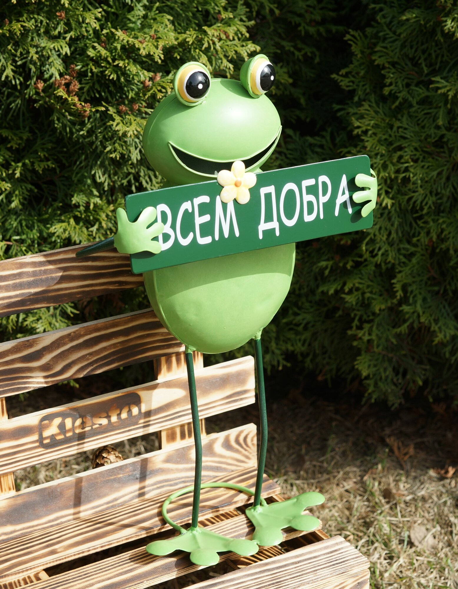Отзывы на Большая садовая фигура Лягушка с табличкой "Всем добра"