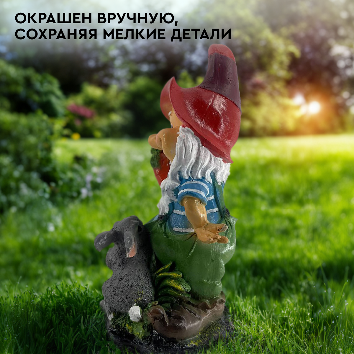 Садовая фигурка для дачи, сада и огорода на газон 'Гном с зайчиком 41x21x21 см'. информация: