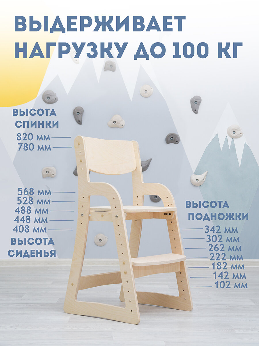 Детский растущий стул ВУД /Растущий стул ортопедический/Детский деревянный стул/Деревянный стул (Вуд) информация: