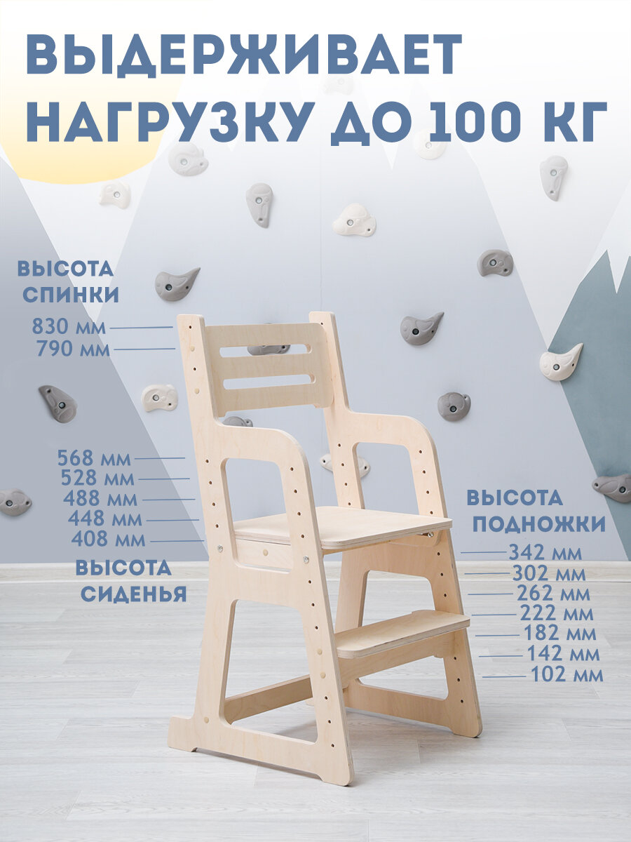 Детский растущий стул Отличный /Растущий стул ортопедический / Детский деревянный стул /Деревянный стул (Отличный) информация: