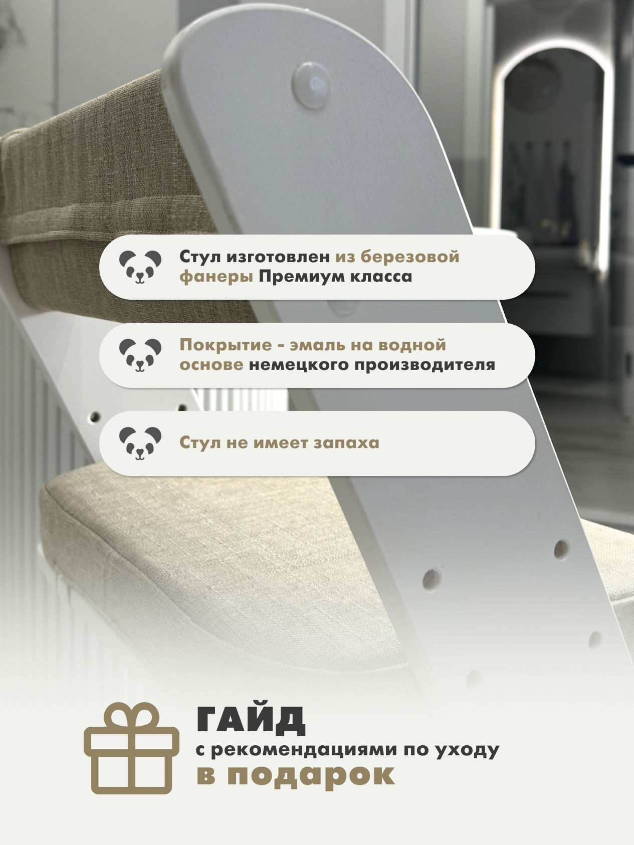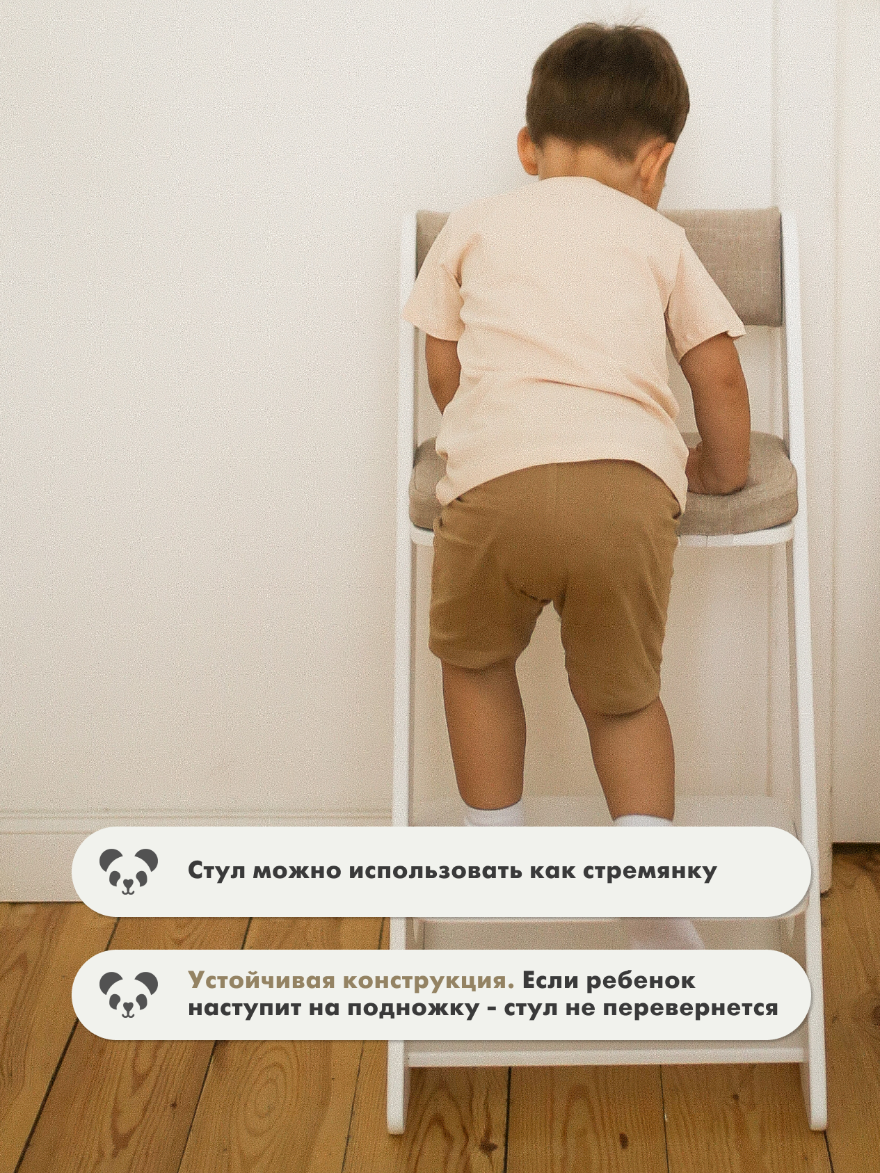 Растущий стул Панда белый с подушками бежевыми информация: