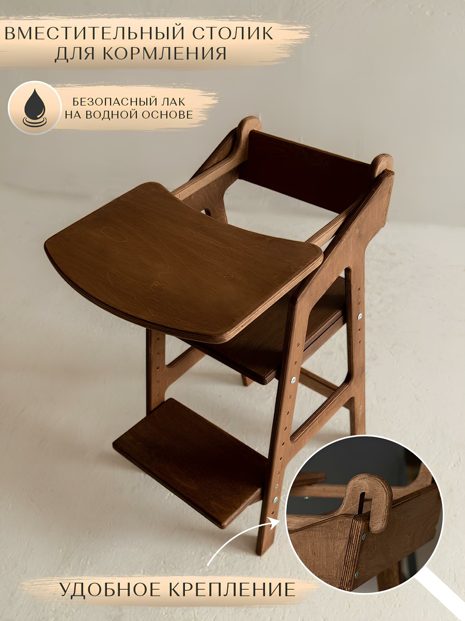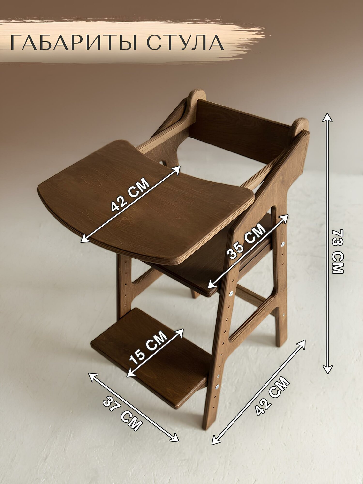 Растущий стул для детей/ Детский стульчик/ Стульчик для кормления, покрытый лаком