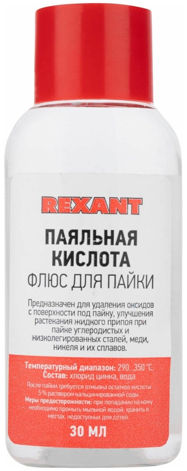 | Дополнительная информация | Флюс для пайки Rexant паяльная кислота 30 мл |