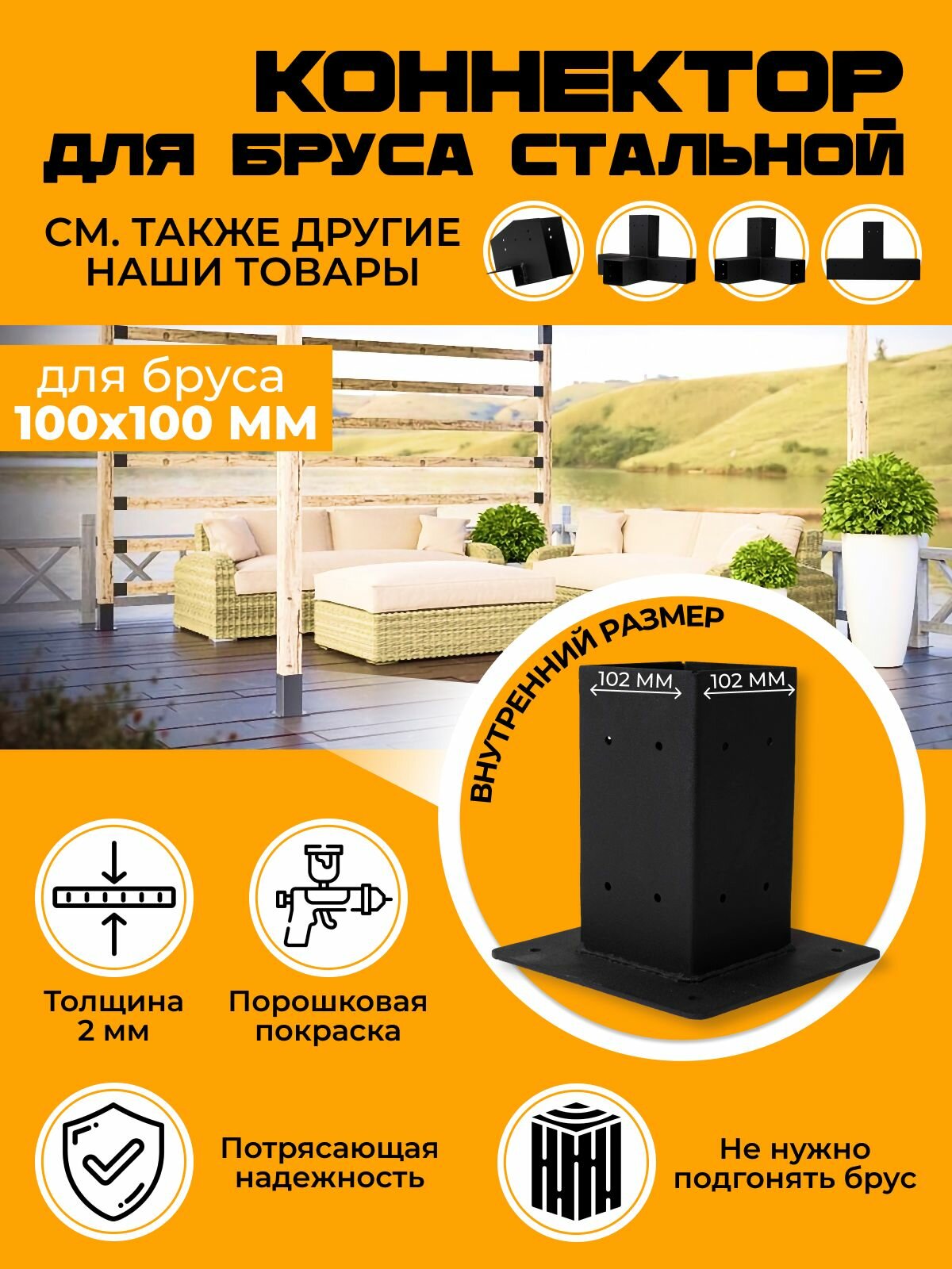 Отзывы на Крепеж строительный для бруса /коннектор/опора для бруса 100х100мм "Стакан"