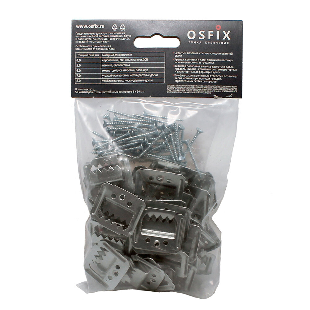Крепеж кляймер №4 с саморезами для вагонки Осфикс Профи усиленный (50 шт.) информация: