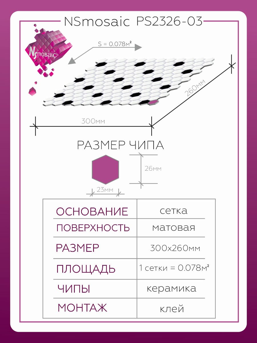 Мозаика керамическая NS mosaic PS2326-03 260x300 чип 23х26 уп 5 шт информация: