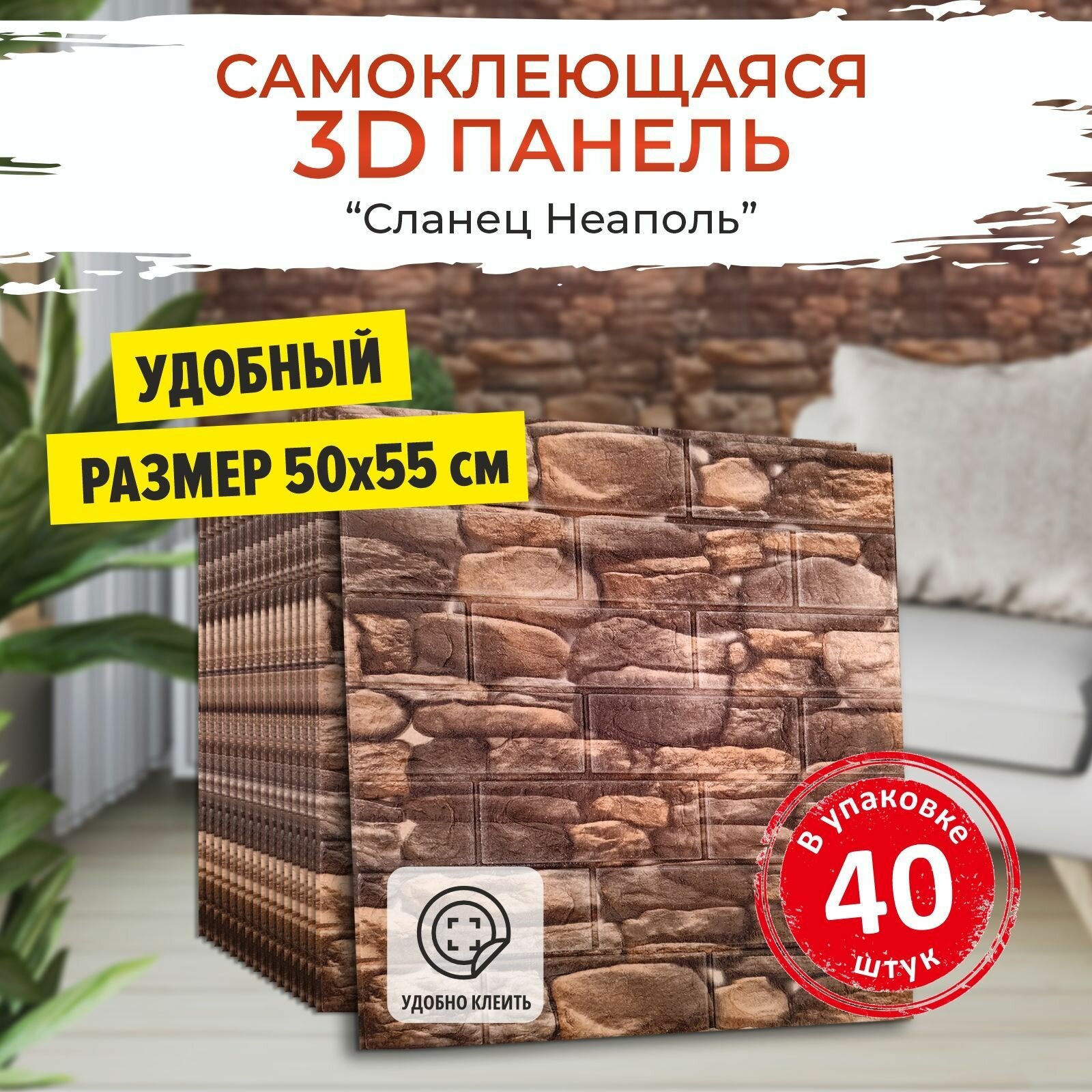 "Сланец Неаполь" 40 шт. мягкие 3д ПВХ панели самоклеющиеся для стен и потолка 500*550*4 мм обои для кухни моющиеся и плитка в ванну на стены информация: