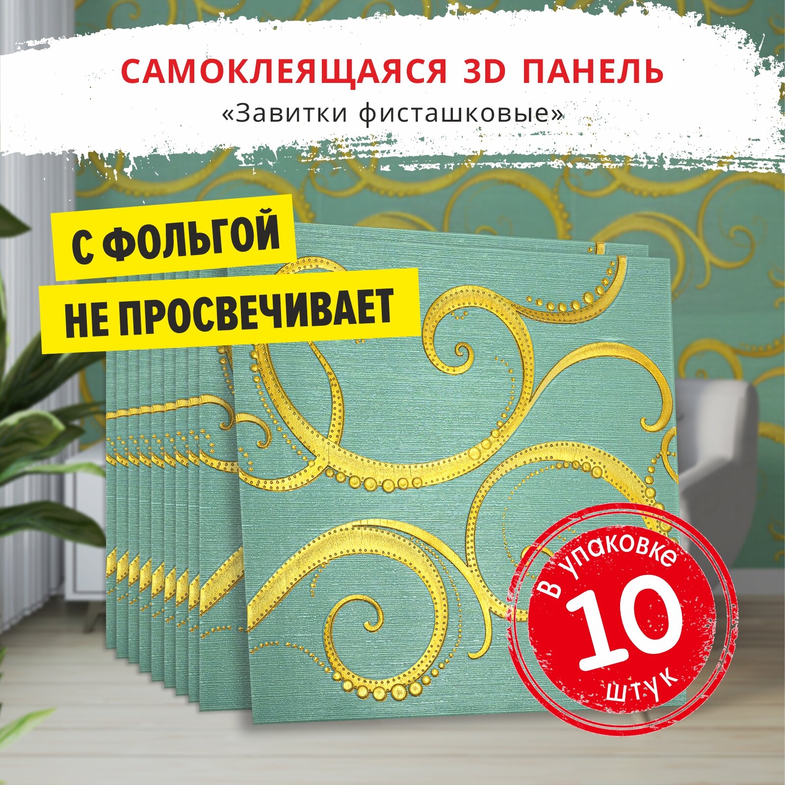 Отзывы на Самоклеющаяся панель для стен мягкая с фольгой "Завитки фисташковые" 10 шт. 3D 690*690*4 мм 3Д обои для кухни моющиеся фартук на стену