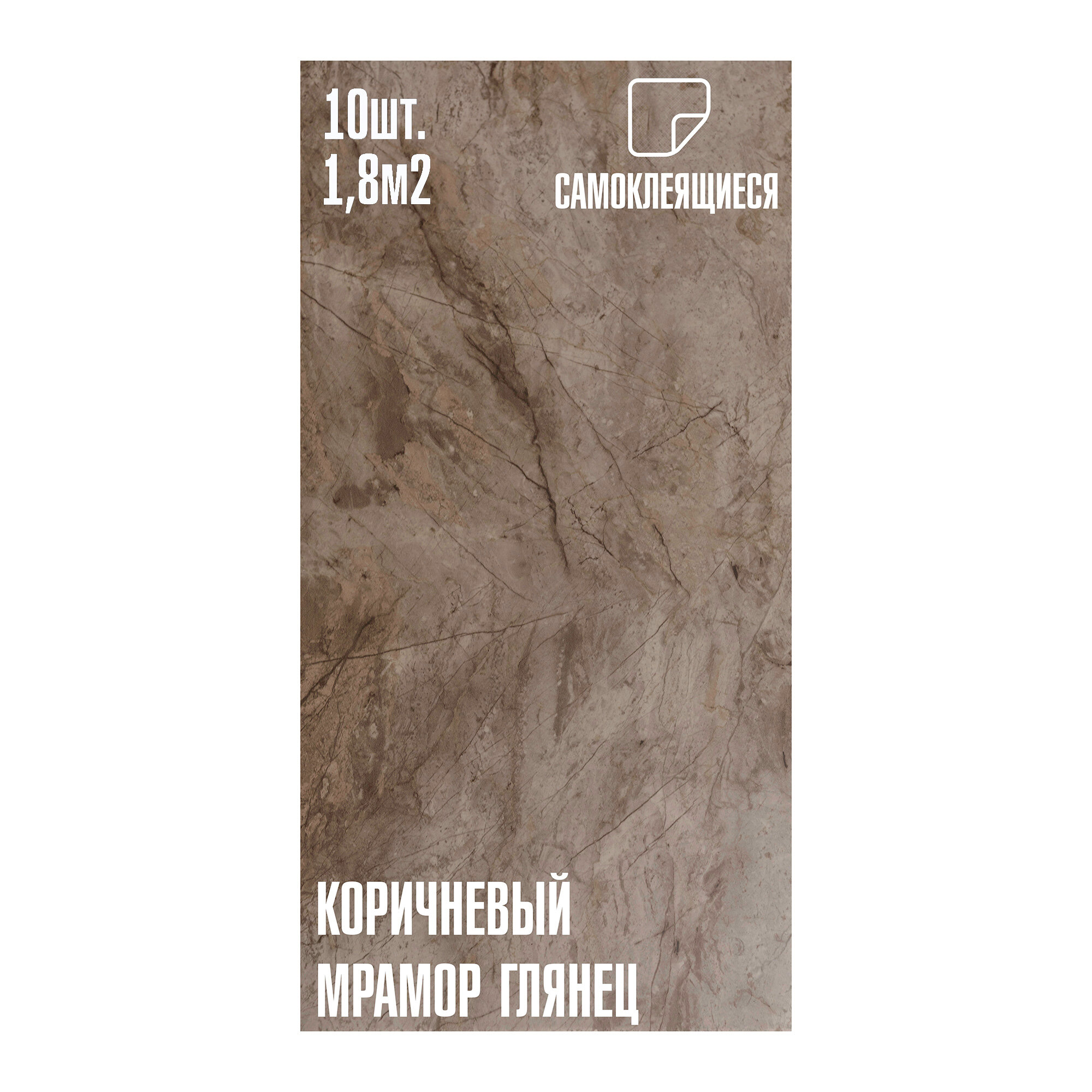 10 цен на Мини Комплект 10шт Самоклеящаяся ПВХ плитка LAKO DECOR "глянец коричневый мрамор", толщина 2мм, 1,8м²