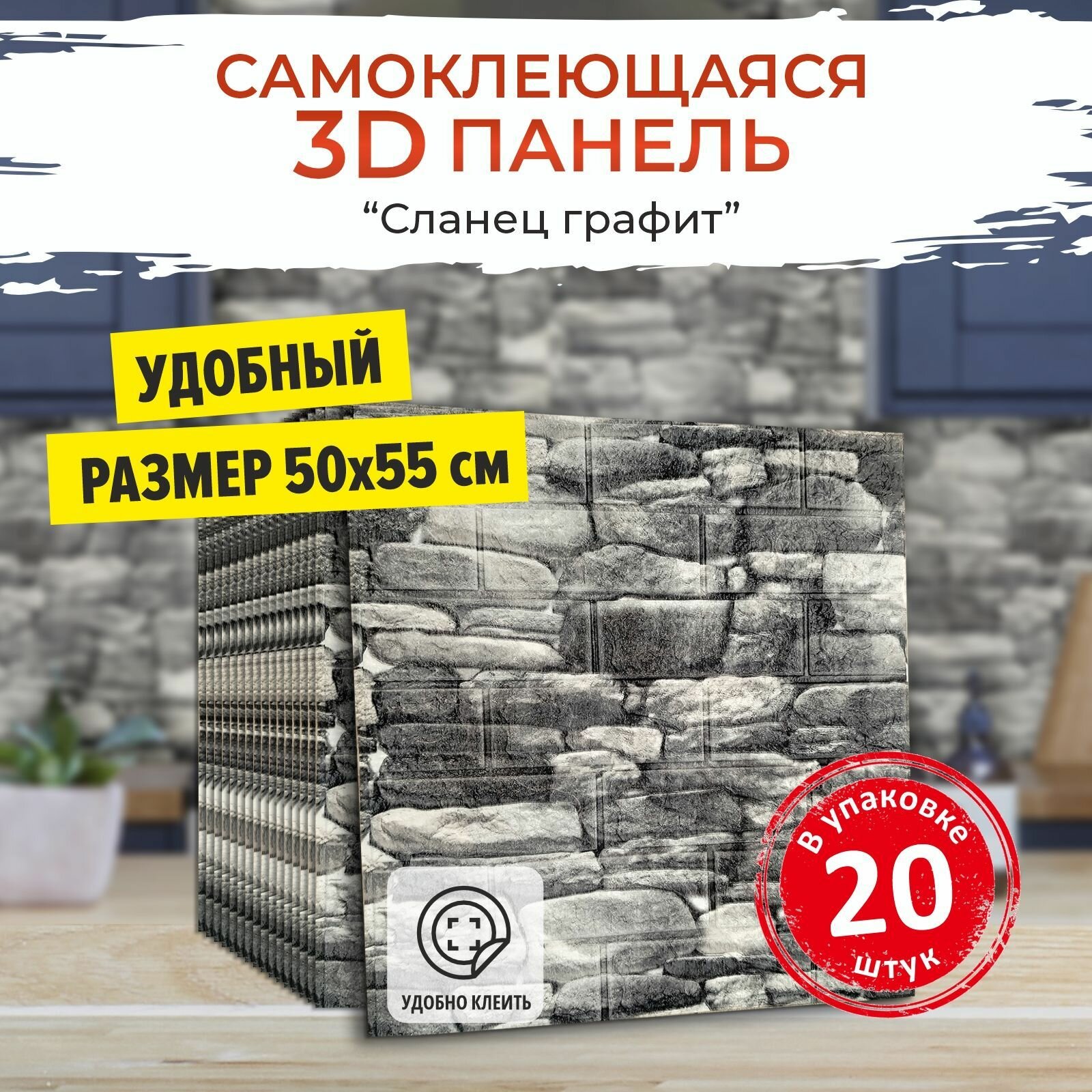 "Сланец графит" 20 шт. самоклеющаяся панель для стен 500*550*4 мм обои для кухни моющиеся влагостойкие, изголовье для кровати мягкое 3д ПВХ информация: