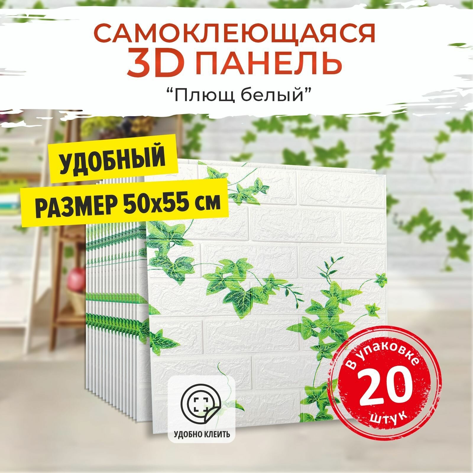 "Кирпич плющ" 20 шт. самоклеющаяся панель для стен 500*550*4 мм обои для кухни моющиеся, изголовье для кровати мягкое 3д ПВХ лиана листья информация: