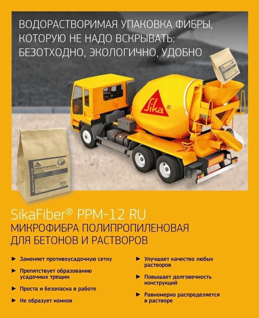 Микрофибра SIKA Fiber PPM-12 RU микроволокно, полипропиленовая для бетонов и растворов 300 грамм информация:
