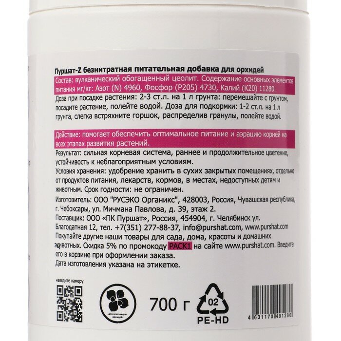Питательная добавка для раcтений «Для орхидей» Пуршат, 700г информация: